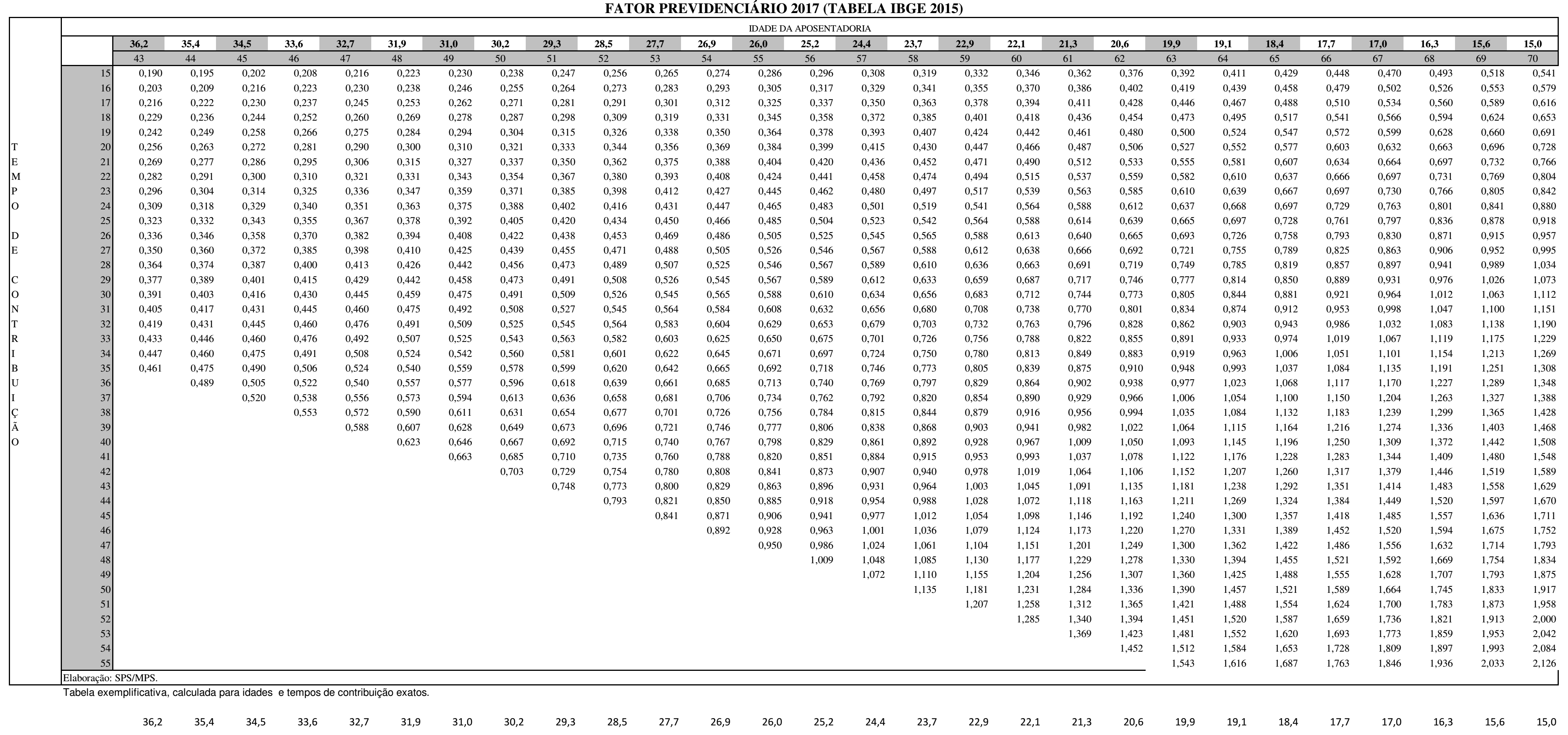 O índice utilizado na fórmula de cálculo do fator foi alterado pela tábua de mortalidade divulgada na quinta-feira (29/11/2018) pelo Instituto Brasileiro de Geografia e Estatística (IBGE).